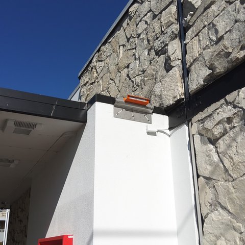 The KD401 Kattsafe Ladder Support Bracket is for mounting to vertical walls or flat surfaces. They are designed to provide a secure attachment point for portable ladders when accessing a roof. The support bracket prevents the movement of a portable in any direction. There is a clear, designated, safe roof access area with the ladder support bracket fastened to the wall.