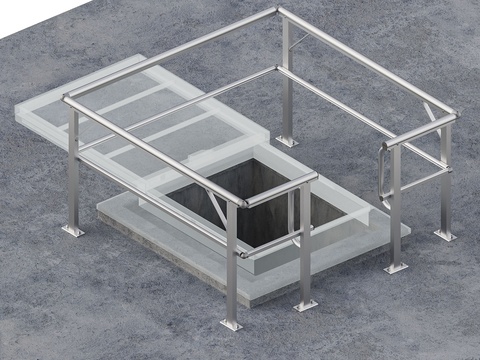 Our roof hatch guardrail system is available in standard sizes and can be easily installed on our roof access hatches. It can also be custom-made to fit irregular roof hatch sizes.