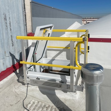 The Roof Hatch Hoist system provides a safe, easy method to lift items up to the rooftop.
